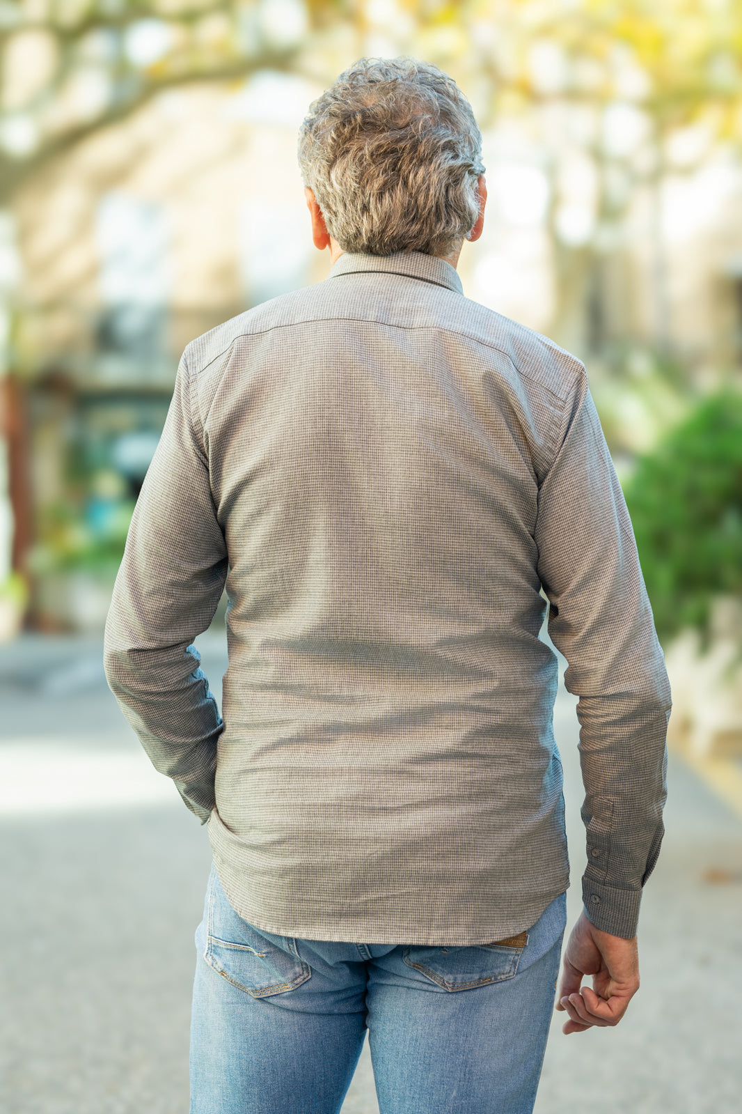 Avec son motif pied de poule, la chemise Gabin s'associe facilement à un jean ou un pantalon pour un look casual chic.