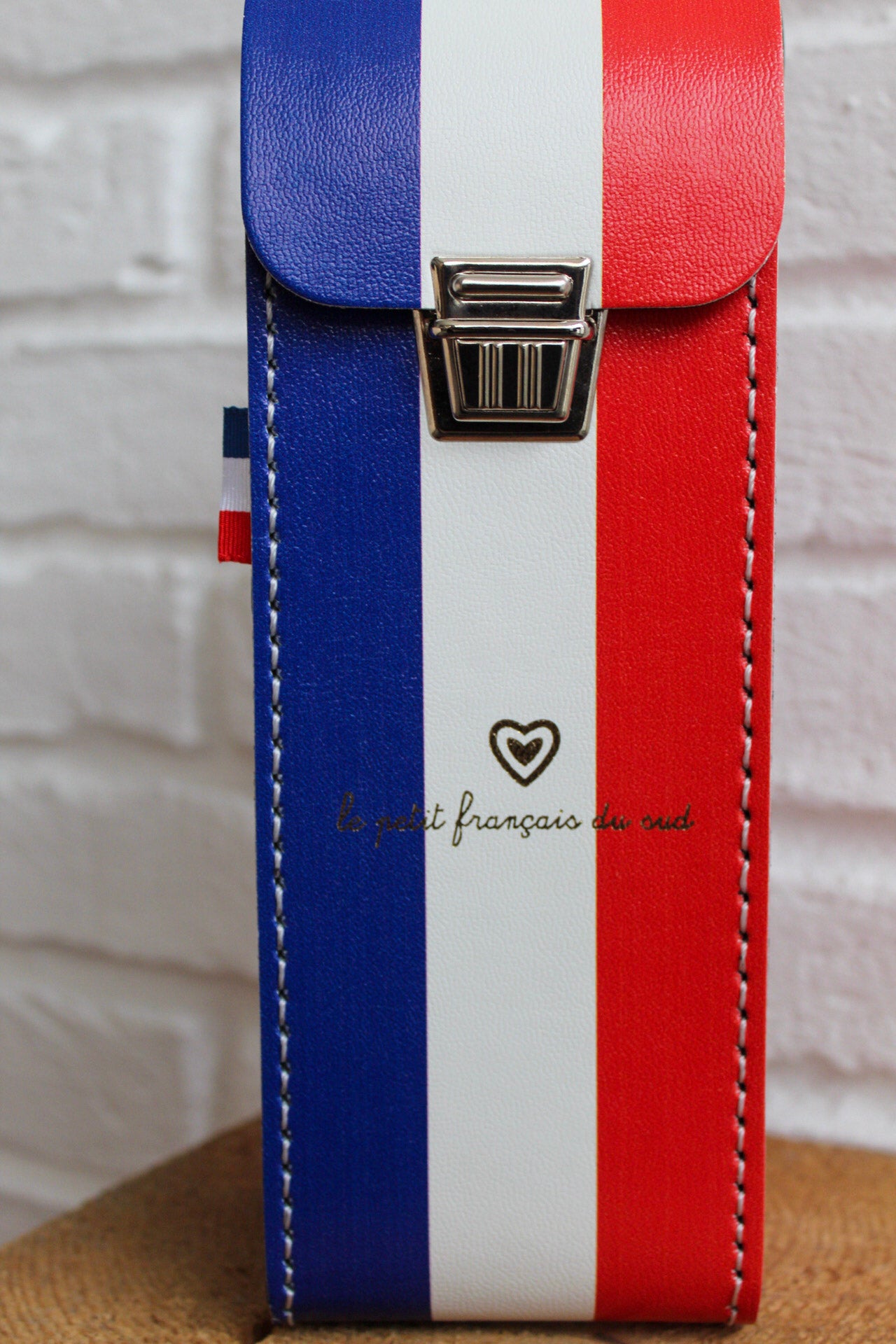 Sa poignée en cuir assure un transport confortable, tandis que son fermoir métallique garantit une fermeture sécurisée. Le tout est sublimé par la signature Le Petit Français du Sud, pour une touche élégante et authentiquement française.