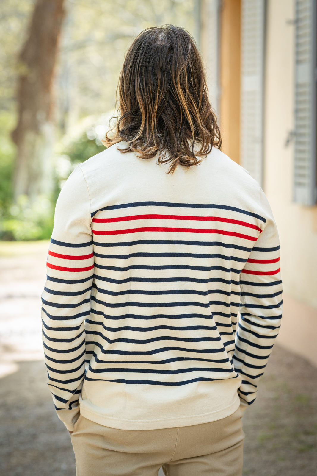 Fabriquée en Bretagne, notre marinière unisexe est une pièce classique repensée pour être encore plus élégante et confortable avec bien sûr une touche d'originalité, ses bandes rouges…