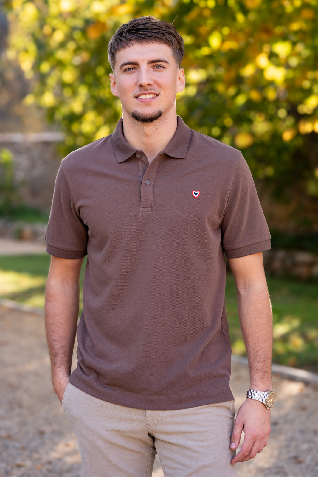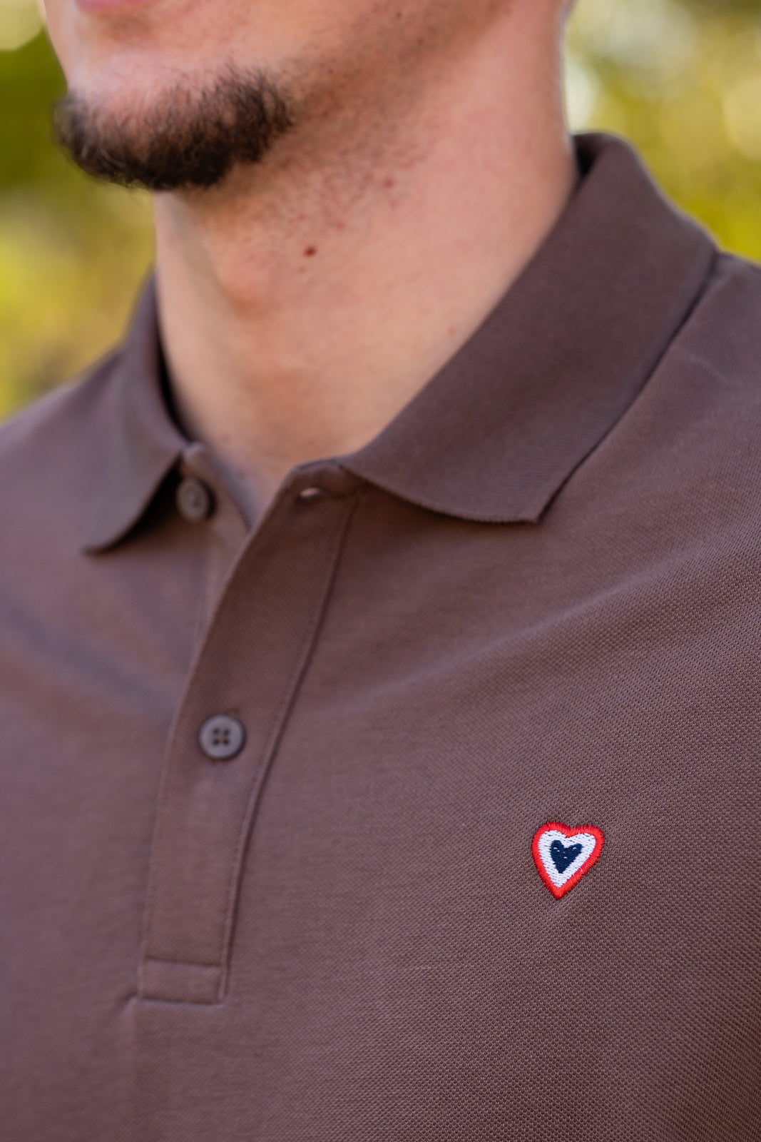 Coupe ajustée, sobriété et petit cœur brodé, ce polo café à tout pour vous faire craquer.