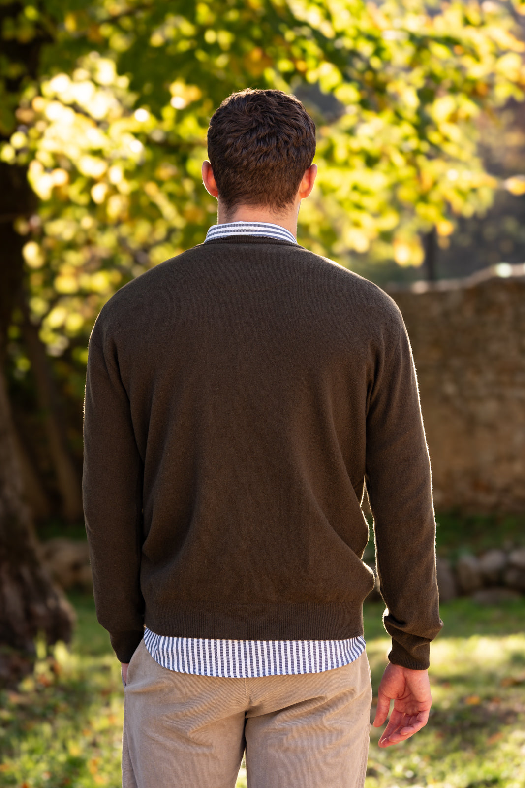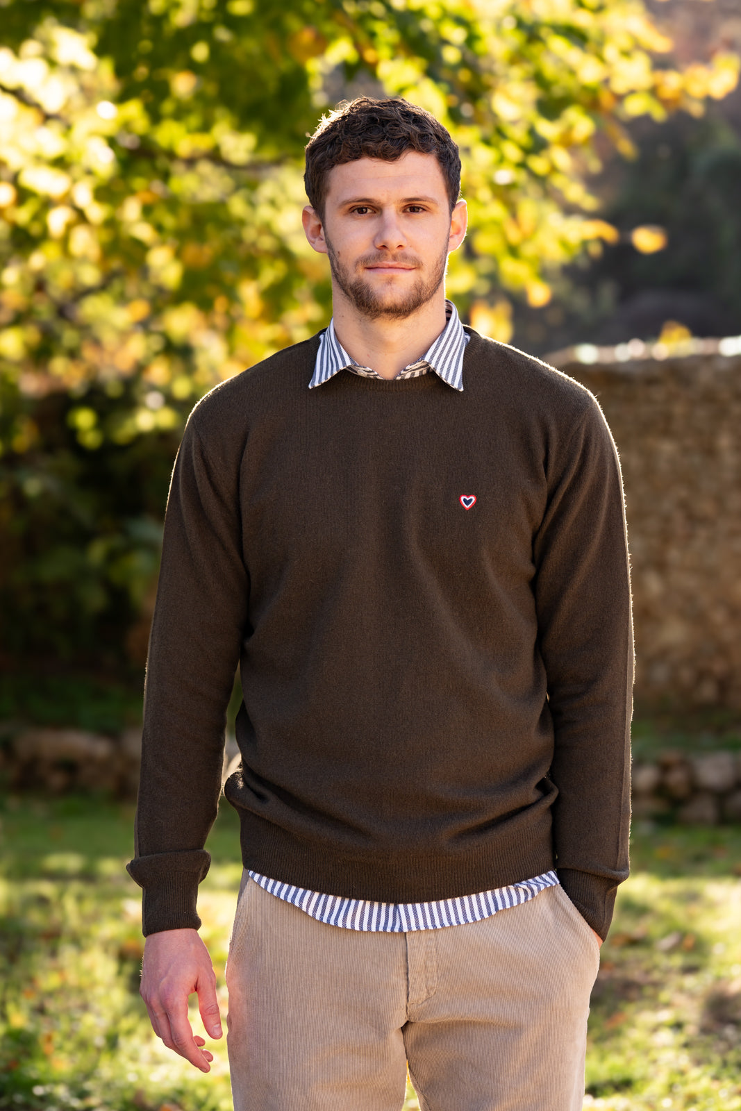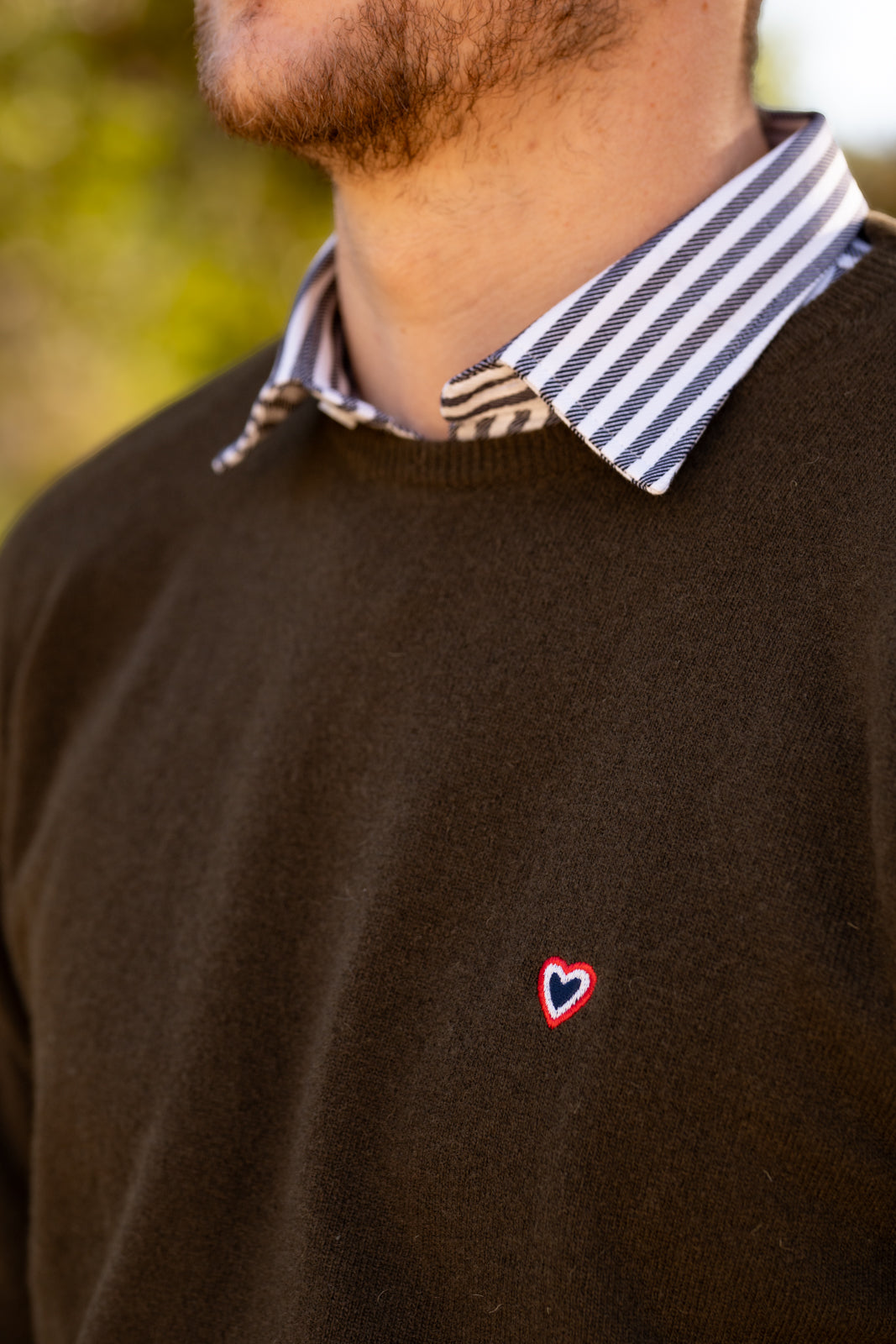 Le pull col rond kaki est un incontournable de votre garde-robe d’hiver.