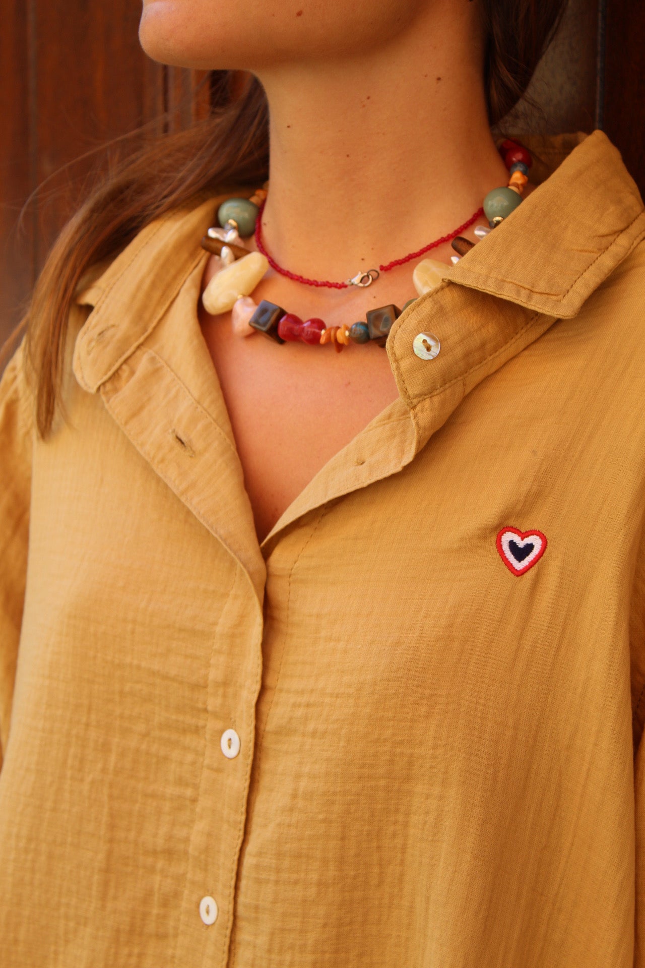 Facile à accessoiriser, la robe chemise cumin se porte aussi bien ceinturée pour souligner la taille que loose pour un look plus décontracté.