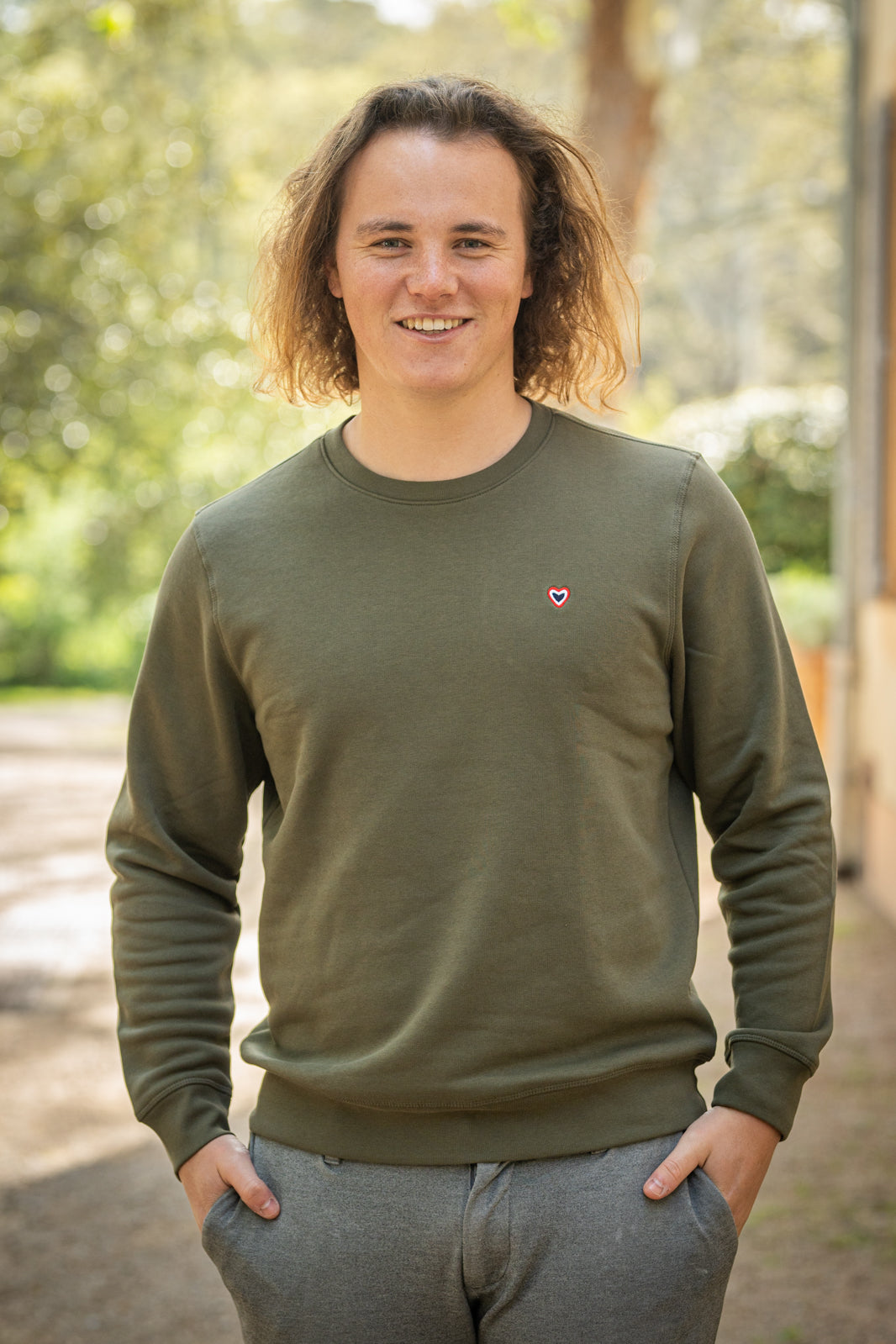 Le sweat col rond kaki revisité par Le Petit Français du Sud.