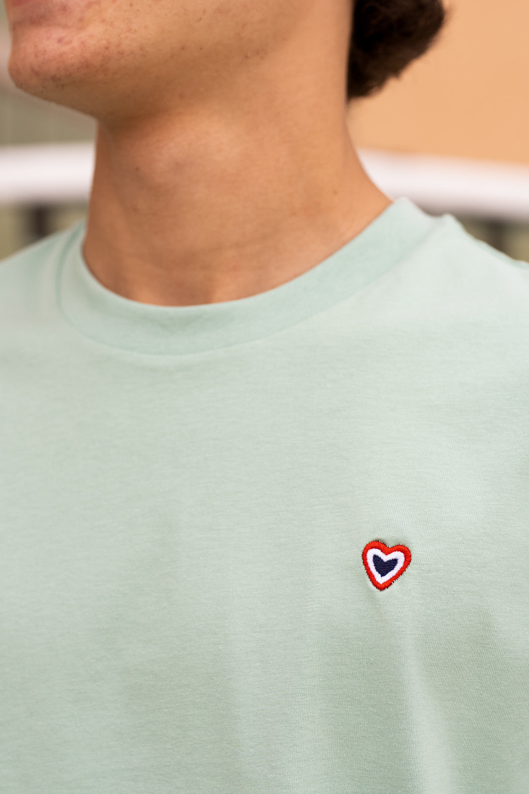 Le t-shirt jade Vincent offre une coupe normale, sans oublier l’incontournable petit coeur brodé avec amour !