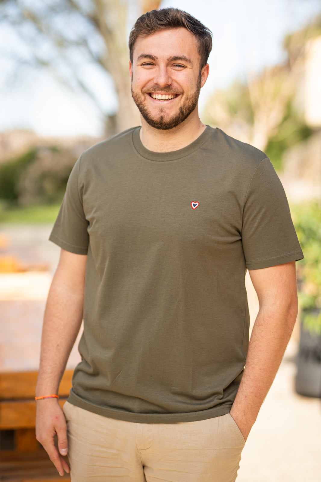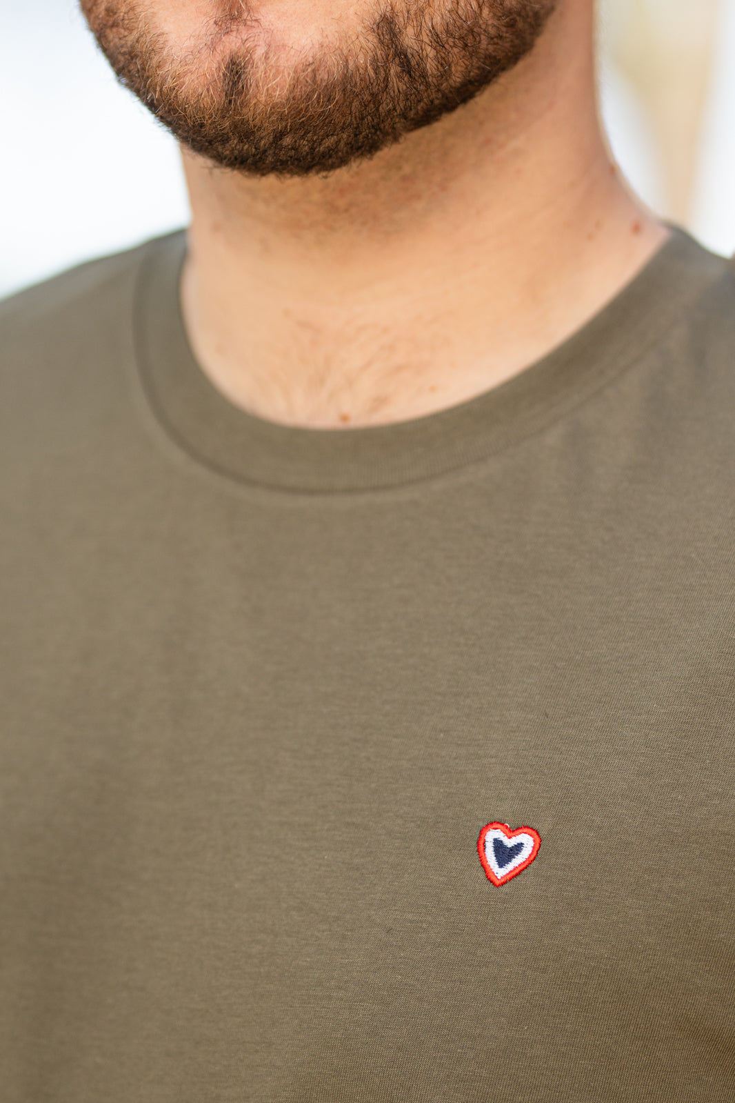 Le t-shirt kaki Vincent offre une coupe normale, sans oublier l'incontournable petit cœur brodé avec amour !