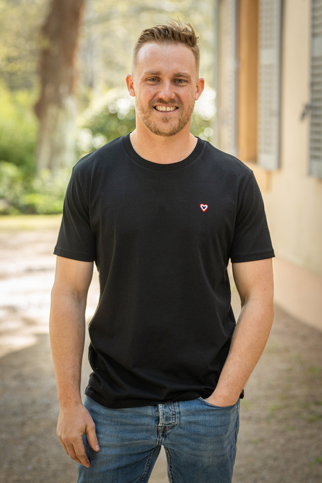 Le t-shirt noir Vincent offre une coupe médium fit, sans oublier l'incontournable petit cœur brodé avec amour !