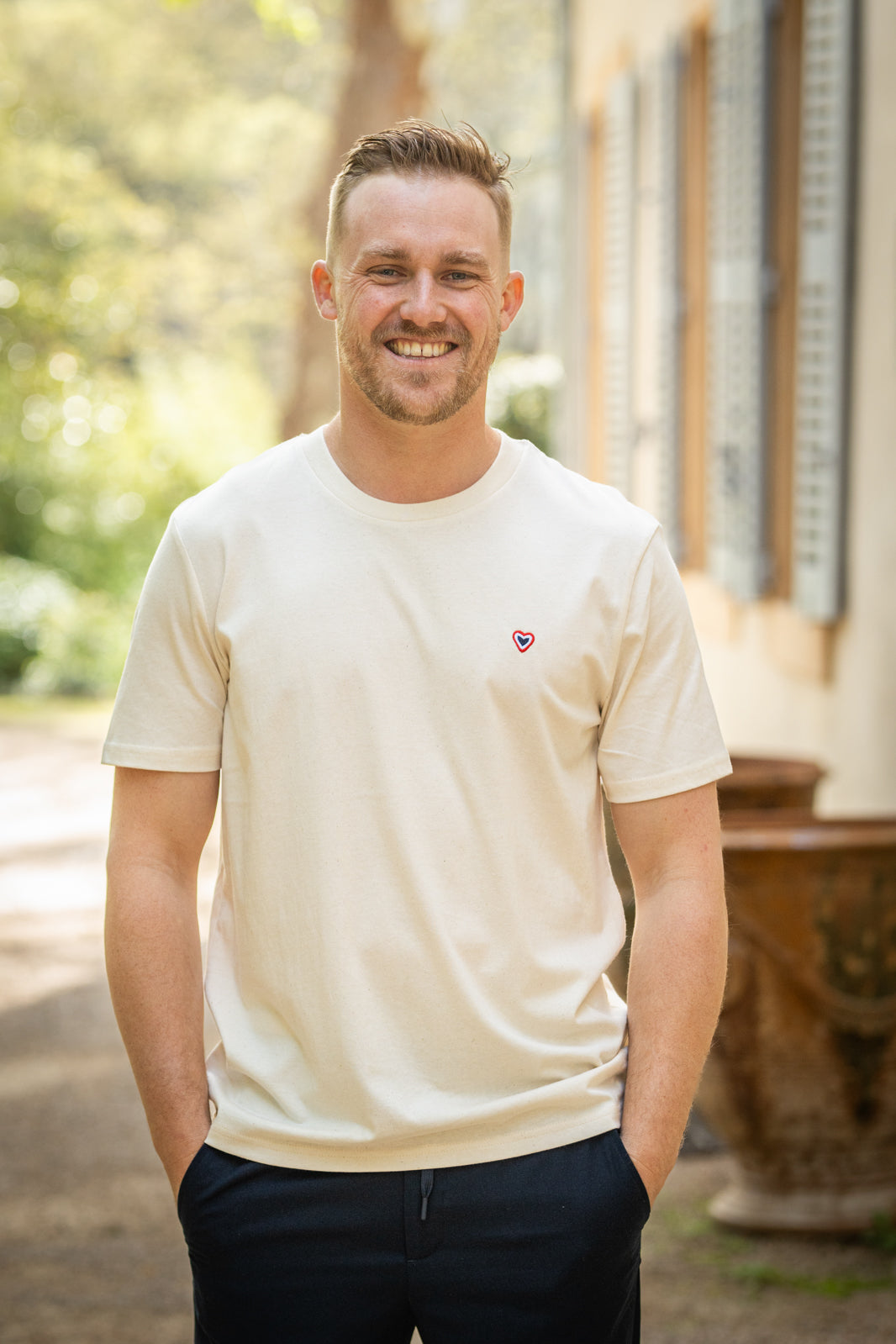 Ce t-shirt vanille Vincent offre une coupe normale, sans oublier l'incontournable petit cœur brodé avec amour !