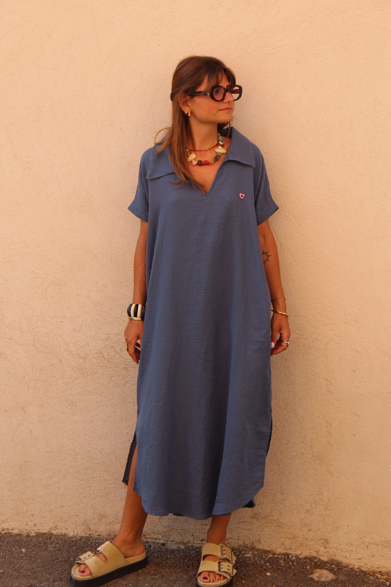 Avec sa coupe fluide et ses manches légères, cette tunique paon mise sur la simplicité et l’élégance naturelle.
